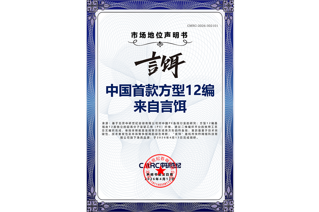 市场地位证明丨杭州快钓-中国首款方型12编来自言饵市场地位声明